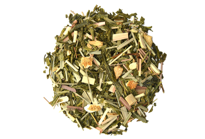 Thé vert de Chine Sencha*, citronelle*, gingembre*, arôme naturel, écorces de citron*, fleurs de souci*.