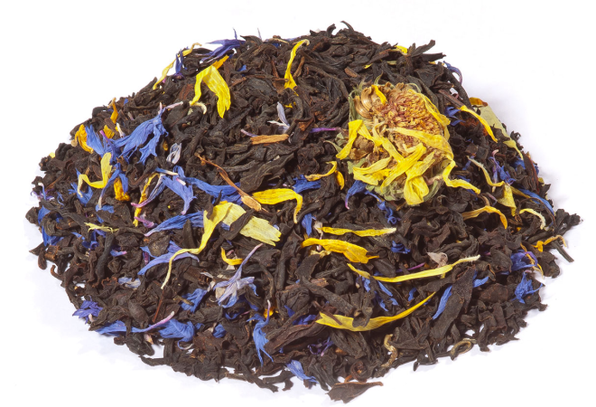 Thé noir Assam*, -Inde du sud*, arôme naturel, fleur de souci*, fleur de bleuet*.