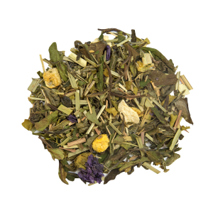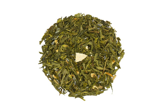 Thé vert China Sencha*, écorce de citron*, arôme naturel, mandarine*, lavande*.