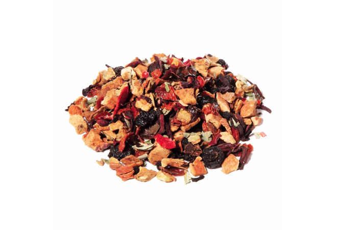 Cette infusion, avec ses ingrédients comme le cynorrhodon et l'hibiscus, est conçue pour être bénéfique à la fois pour les enfants et les adultes. Le cynorrhodon renforce le système immunitaire, tandis que l'hibiscus favorise un sommeil paisible et un bon fonctionnement des systèmes digestif, gastro-intestinal et urinaire, offrant une expérience à la fois délicieuse et salutaire.