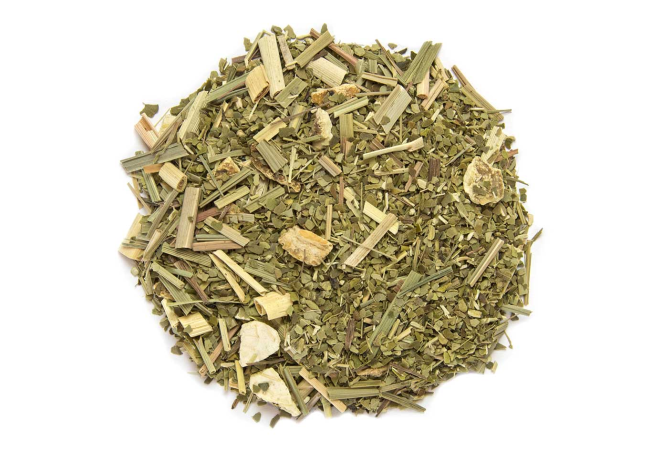 maté vert* (66%), citronnelle*, écorces de citron*, écorces orange*, physalis*, arôme naturel, fleurs de souci*.
