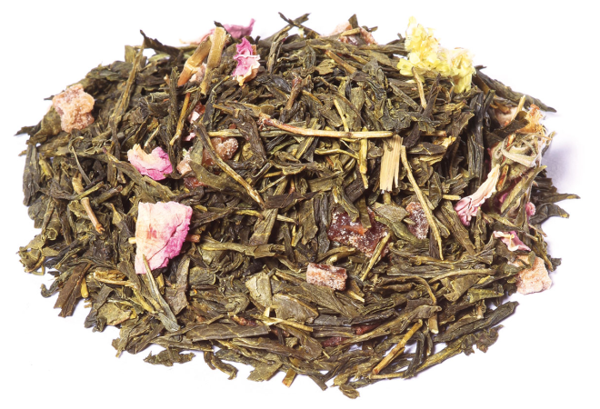 Thé vert China Sencha* (77%), datte* (datte, farine de riz) (21%), arôme naturel, pétale de rose,* fleurs d’immortelle*.